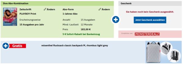 *SUPER* PLAYBOY Print Jahresabo für 178€ + bis zu 165€ Prämie + GRATIS Reisenthel Classic Backpack M (Wert ~36€)
