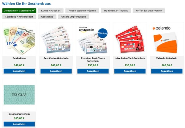 Diese Prämien stehen zum Beispiel zur Auswahl: