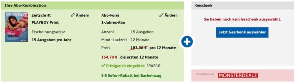 Bei Hobby + Freizeit gibt es das PLAYBOY Print Jahresabo für 159,70€ + bis zu 150€ Prämie.