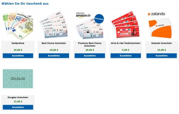Diese Prämien stehen zum Beispiel zur Auswahl: