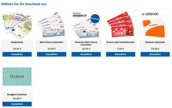 Diese Prämien stehen zum Beispiel zur Auswahl: