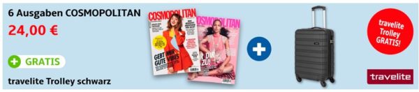 *TIPP* 6 Monate Cosmopolitan für 24€ + GRATIS Travelite Trolley Lagos (Wert: 60€)