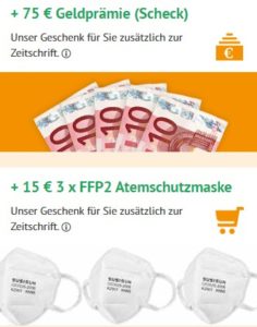 Ihr könnt euch vor allem für Fashion begeistern? Dann bekommt ihr gerade bei KioskNEWS ein sehr interessantes Abo. 12 Ausgaben der „Vogue“ Zeitschrift gibt es gerade mal für 88,80€ + 75€ Scheck + 3 Atemschutzmasken FFP2.