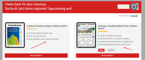 Wie ihr sehen könnt enden die z.B. vorgeschlagenen Zeitungen automatisch und somit geht ihr kein Abo ein 🙂