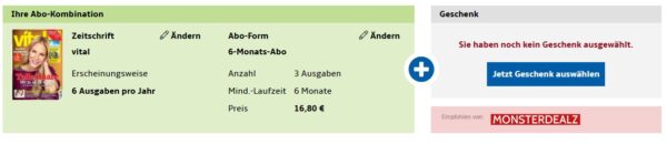 vital Halbjahresabo für 16,80€ + bis zu 15€ Prämie