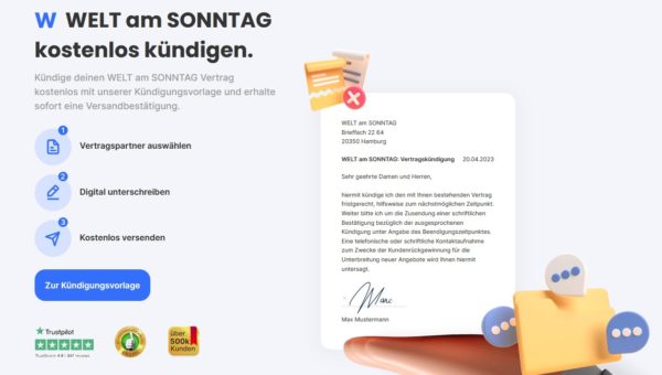 Kleiner Hinweis: smartkündigen.de nutzt eine andere Kündigungsadresse, das macht aber kein Problem da die „WELT“ verschiedene Büros/Adressen hat 🙂
