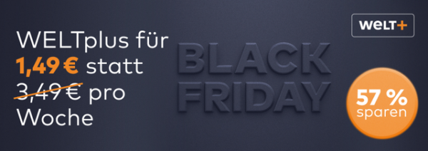 Bei WELT gibt es nun auch zum Black Friday ein super Deal und es gibt WELTplus für 1,49€/Woche statt 3,49€/Woche. -> 57% Ersparnis