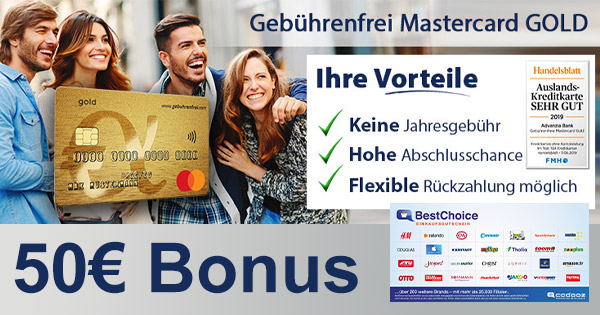*50€ BONUS* für die gebührenfreie Mastercard Gold inkl. gratis Reiseversicherung