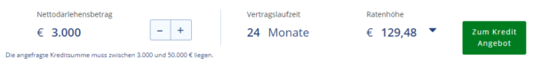 - Einen Ratenkredit über mindestens 3.000€ abschließen.