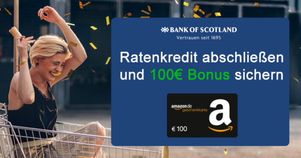 - Bank of Scotland: 100€ Amazon.de Gutschein* für Ratenkredit ab 3.000€