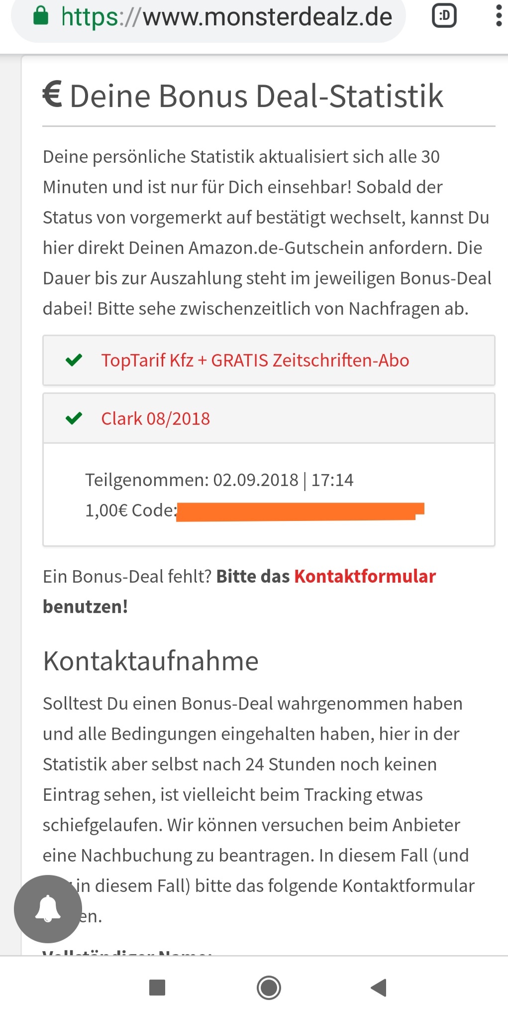 Du hast am Clark 08/2018 Deal am 02.09.2018 19:14 teilgenommen. den Gutschein wurde confirmed. und soweit ich sehe schon ausbezahlt…