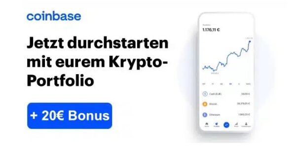 Von uns gibt es nämlich 20€ Bonus zur Kontoeröffnung. Und das Beste: Es sind lediglich Anmeldung und erster Trade erforderlich! Was ihr mit Coinbase so alles anstellen könnt und warum die 20€ Bonus erst der Anfang sind, das erkläre ich euch im Deal.