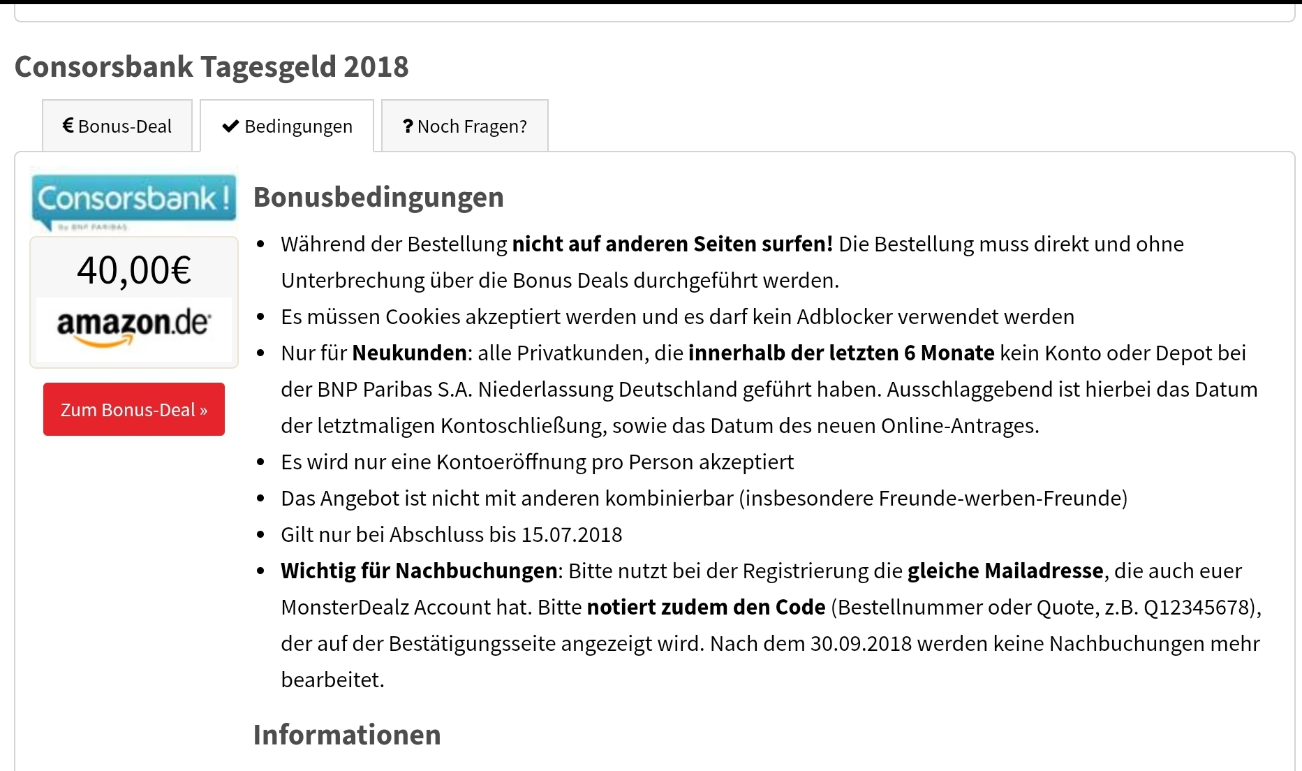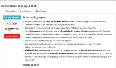 - 40€ Amazon.de Gutschein* + 0,6% Zinsen bei Consorsbank Tagesgeld