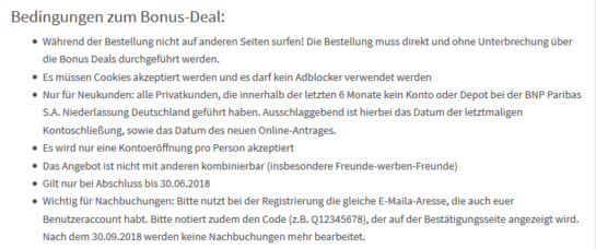 - Nur für Neukunden: alle Privatkunden, die innerhalb der letzten 6 Monate kein Konto oder Depot bei der BNP Paribas S.A. Niederlassung Deutschland geführt haben. Ausschlaggebend ist hierbei das Datum der letztmaligen Kontoschließung, sowie das Datum des neuen Online-Antrages.