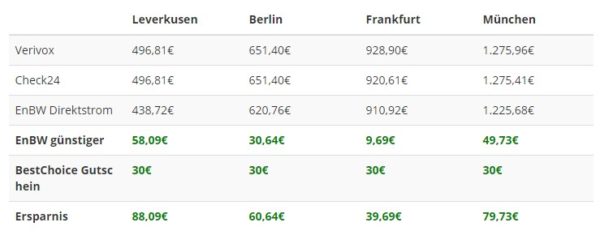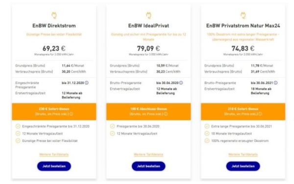 Zusätzlich gibt es von EnBW noch einen Sofort-Bonus, der sich nach eurem gewählten Tarif und den kWh richtet. Der Sofort-Bonus ist im Preis direkt mit berücksichtigt.