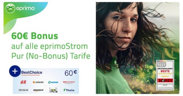 - 60€ BestChoice-Gutschein bei eprimoStrom & -Gas Pur Tarifen
