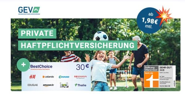💥 GEV Versicherung: private Haftpflichtversicherung + 30€ Bonus on Top!
