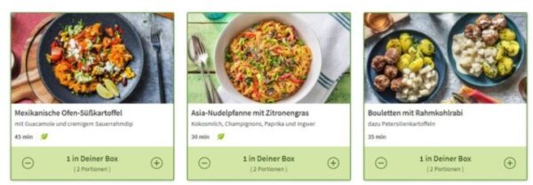 Bis zu 120 € Rabatt auf insgesamt 6 HelloFresh Kochboxen für Neukunden und -kundinnen im flexiblen Abo (inkl. gratis Versand der ersten (1.) Box; alle weiteren Boxen Versandkosten in Höhe von jeweils 5,99 EUR). Neukunden und -kundinnen sind all jene, die entweder zum ersten Mal bei HelloFresh sich registrieren oder deren Kündigung des ehemals bestehenden HelloFresh Abonnementvertrages länger als ein (1) Jahr zurückliegt. Der Rabatt hängt von der Box-Größe ab und wird bei der Erstbestellung angezeigt. Der Maximalrabatt in Höhe von 120 € für insgesamt 6 HelloFresh Kochboxen bezieht sich auf die Box-Größe für fünf (5) Gerichte pro Woche für vier (4) Personen. Bei Verringerung der Anzahl der Personen bzw. der Gerichte pro Woche ist der Rabatt entsprechend geringer. Neukunden und -kundinnen erhalten zusätzlich zum Rabatt ein (1) Gratis-Produkt aus dem erweiterten Sortiment (beispielsweise Desserts) in jeder Box, das sie der Bestellung wöchentlich als Gratis-Zugabe beilegen können, solange sie Kunde oder Kundin bei HelloFresh sind und Ihr Abonnementvertrag nicht kündigen. Das Angebot zur Zugabe eines (1) Gratis-Produktes gilt für ein (1) Jahr nach der Einlösung des Gutscheins. Das Gratis-Produkt wird nicht automatisch dem Warenkorb hinzugefügt, sondern muss selbst aktiv hinzugefügt werden. HelloFresh hat das Recht, ein (1) alternatives Produkt beizulegen, sollte das vom Neukunden gewählte Gratis-Produkt nicht mehr verfügbar sein. Der Rabatt ist innerhalb eines Zeitraums von Tagen ab dem Einlösungsdatum der ersten Kochbox gültig. Keine Barauszahlung des Rabatts und des Gratis-Produktes. Nicht mit anderen Gutscheinen kombinierbar und nur einmal pro Neukunden oder -kundin und Haushalt gültig. Wöchentlich pausier- und kündbar. Preisänderungen vorbehalten. Im Übrigen gelten die Allgemeinen Geschäftsbedingungen von HelloFresh: hellofresh.de/about/agb