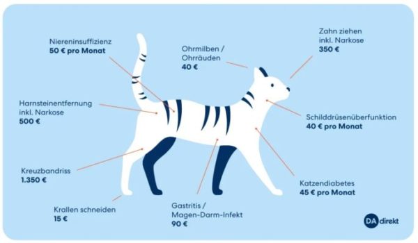 An diesem Schaubild kann man ganz deutlich sehen, dass für Katzenhalter ein ganz schöner Brocken Geld im Jahr zusammen kommt, wenn die Miezekatze einmal krank wird.