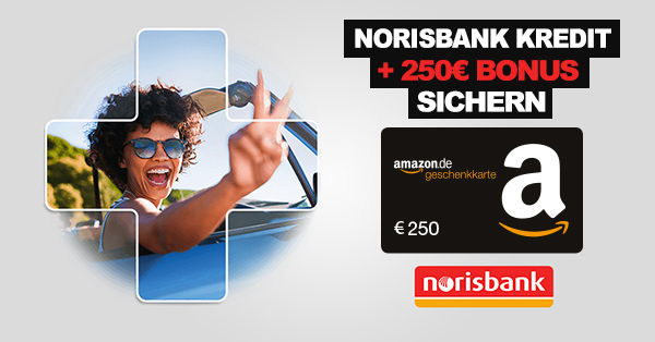 Benötigt ihr gerade einen kleinen Kredit z.B. für den nächsten Urlaub, erste Wohnung oder ein neues Auto oder ihr wollt einen alten zu teuren Kredit ablösen? Dann kommt der Bonus-Deal genau richtig für euch, denn bei der norisbank bekommt ihr ab einem Ratenkredit ab 5.000€ bis 65.000€ nun als Monsterdealz-Bonus einen 250€ Amazon/ BestChoice-Gutschein on Top.