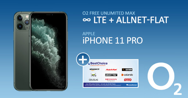 o2 Free Unlimited Max-Tarif + Apple iPhone Pro 11 + 180€ BestChoice-Gutschein für 59,99€/Monat – eff. 15,43€/Monat