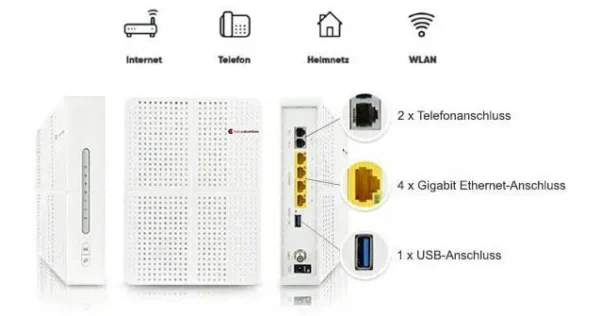 Zu eurem gewählten Tarif bekommt ihr optional zubuchbar gegen eine monatliche Gebühr noch eine FRITZ!Box 6660 (für 4,99€ mtl.) oder eine schicke WLAN-Kabelbox (für 3,99€ mtl.) dazu. Der WLAN-Standardrouter garantiert stabiles Internet sowohl per Kabel als auch WLAN.