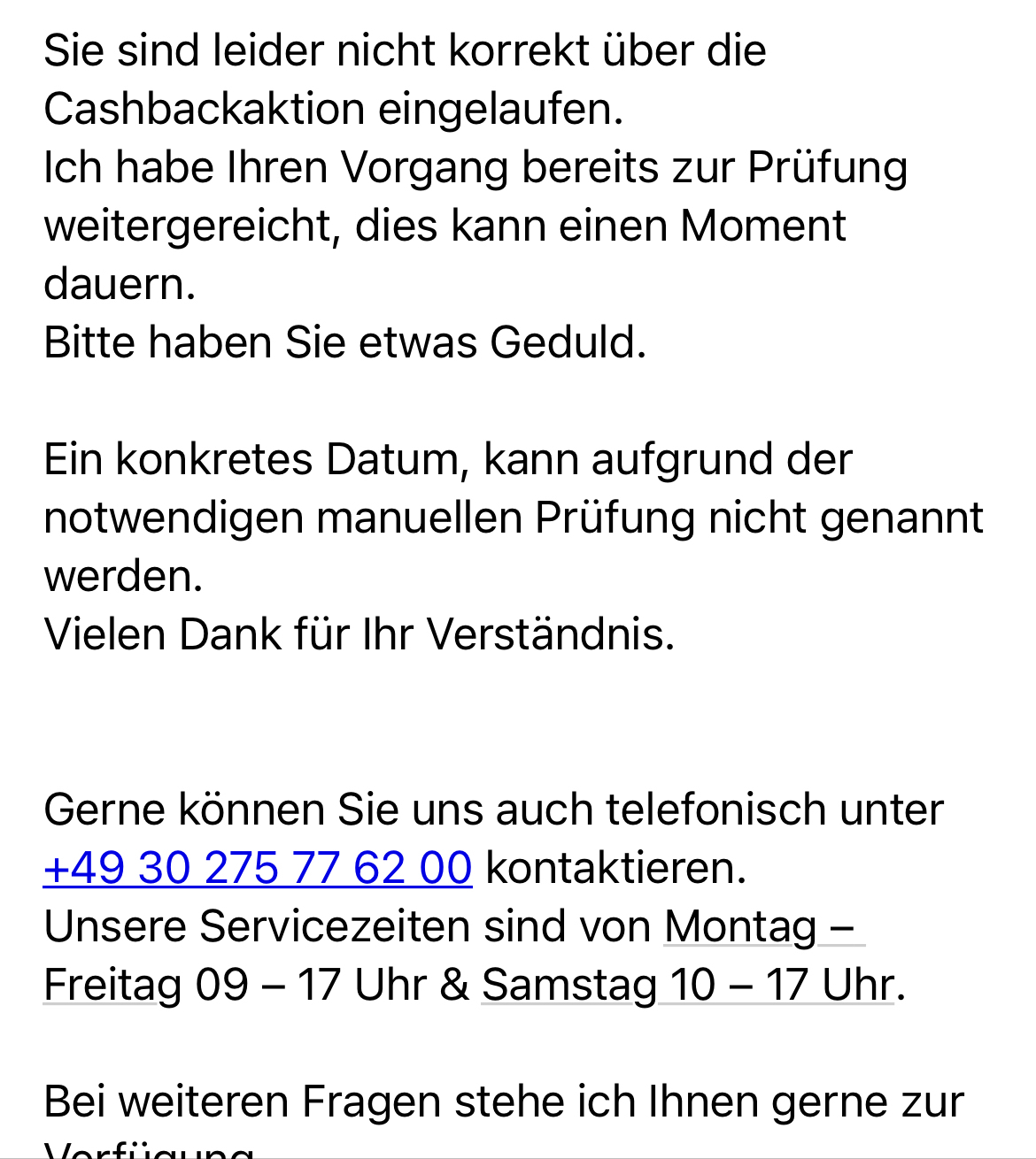 Habe mal angerufen, da auch heute die 50€ noch nicht gutgeschrieben wurden…
