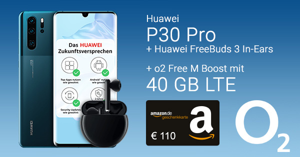 *TIPP* Huawei P30 Pro + 40 GB LTE + Allnet Flat im o2-Netz für 34,99€/Monat + 110€ BONUS + GRATIS: Huawei FreeBuds 3 Kopfhörer (alternativ auch mit unlimitiert LTE!)