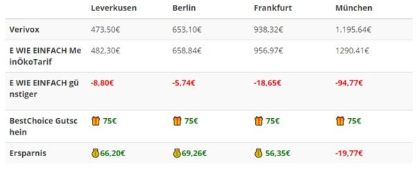 - Leverkusen: PLZ 51373, Verbrauch Strom 1.500 kWh, Gas 6.000 kWh
