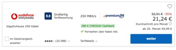 Beispiel-Deal mit dem GigaZuhause 250 Kabel