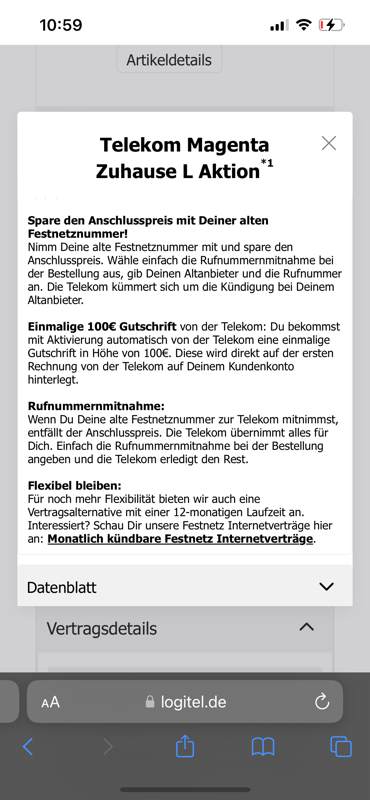 im Bestellprozess wird auf eine einmalige 100EUR Gutschrift von der Telekom hingewiesen. Diese wird in der Tarifbeschreibung des Tarifs Magenta L Aktion genannt. Damit wäre neben der 120EUR Cashback Aktion von Logitel ein weiterer Vorteil iHv 100 EUR inkludiert. Wird das in der Beispielrechnung berücksichtigt?