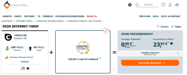 Alternativ haben wir unten auch die Angebote mit 24 Monaten Laufzeit von Logitel mit bis zu 260€ Cashback verlinkt.