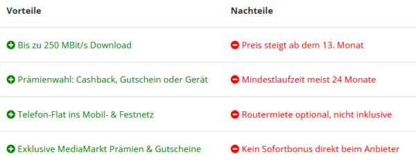 Vorteile des Vertrags über MediaMarkt