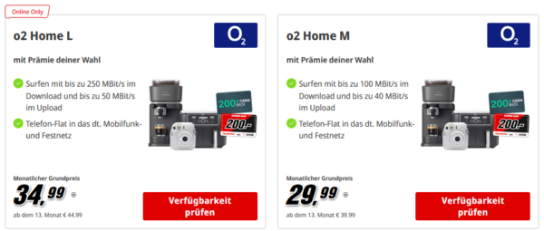 DSL mit Extra-Bonus: o2 Home-Tarife ab 29,99€/Monat bei MediaMarkt mit 200€ Cashback