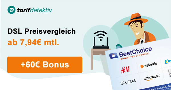 - 60€ Bonus für DSL bei TarifDetektiv