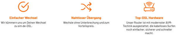Die Preise sind bei 1&1 bekanntlich direkt etwas teurer, nämlich DSL 16 für 29,99€/Monat, DSL 50 für 39,99€/Monat, DSL 100 für 44,99€/Monat und DSL 250 für 49,99€/Monat. Daher können sich die Aktionspreise bei sim.de aktuell ziemlich sehen lassen, oder? 🙂