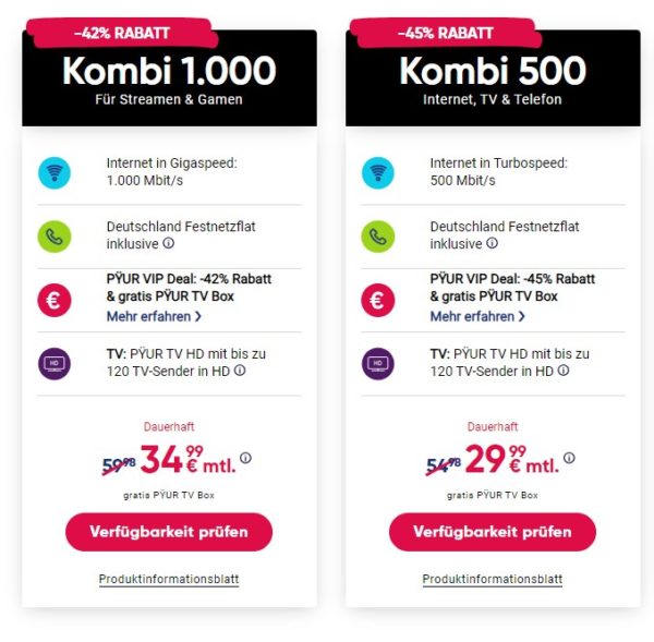 *TOP* PŸUR: Dauerhaft bis zu 45% Rabatt sichern – z.B. 500 Mbit/s + Telefon + PŸUR TV HD für 29,99€/Monat