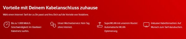 Nice, direkt bei Vodafone bekommt ihr den Vodafone Cable Max mit 1.000 Mbit/s für 44,99€/Monat + 160€ Cashback – eff. 38,61€/Monat