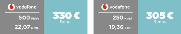 - Vodafone Internet & Phone Cable 250 + 305€ Cashback + 140€ Gutschrift