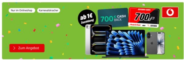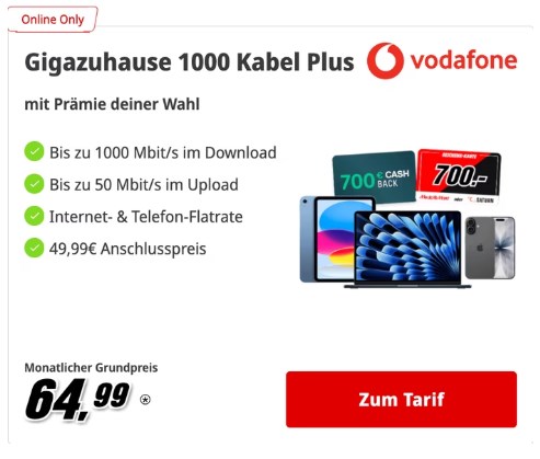 Update | Hammer-Deal bei MediaMarkt! 🚀 Es gibt jetzt fette Prämien (iPhone 17, MacBook, iPad Pro) zum Vodafone Kabel-Internet dazu. Rechnerisch landet man beim Kabel 1000 Tarif unter 20€/Monat. Das ist so günstig, dass es fast nach einem Preisfehler aussieht. Wer schnelles Internet und neue Apple-Hardware braucht: Schlagt zu, bevor es weg ist!