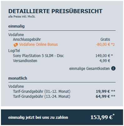 - = Rechnerische Tarifkosten von 573,75€ über 24 Monate = 23,91€/Monat wenn ihr euch die Konsole ohnehin gekauft hättet. 😎