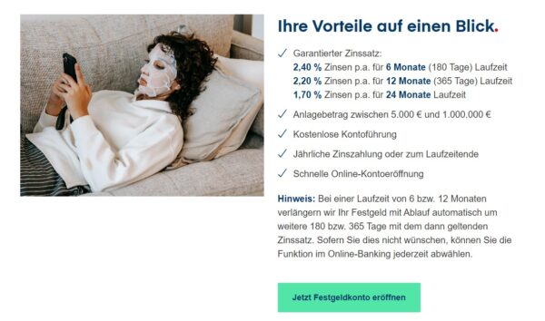 1822direkt: 2,40% Zinsen p.a. auf Festgeld (6 Monate, ab 5.000€) // 2,20% bei 12 Monaten // 1,70% Zinsen bei 24 Monaten Laufzeit