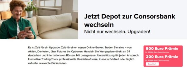 🎁 *TIPP* Bis zu 500€ Prämie für Consorsbank Depotwechsel