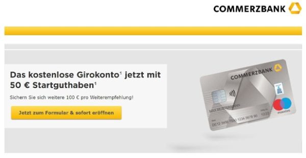 - Commerzbank: 50€ Startguthaben für kostenloses Girokonto