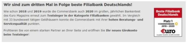 50€ Bonus für Commerzbank Girokonto (kostenlos mit Mindestgeldeingang)