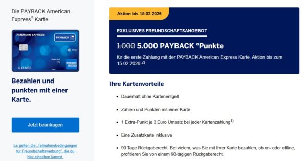 - Kostenlose Payback AMEX Kreditkarte mit 5.000 Punkten