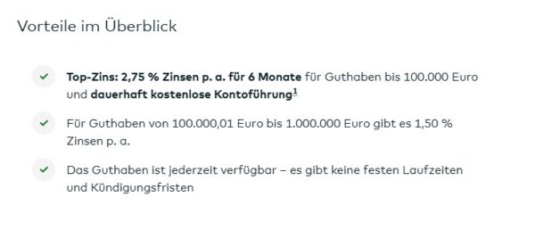 - 2,75% Zinsen p.a. für 6 Monate garantiert