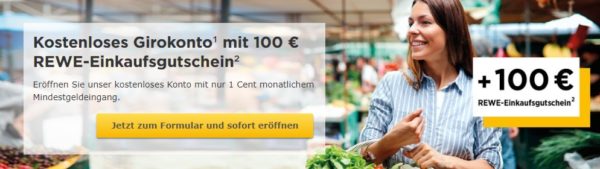 Denn diesmal heißt es: Kein Kundenkompass! Kostenlose Kontoführung! Kostenlose Mastercard Classic! 100€ REWE-Gutschein für die Eröffnung!