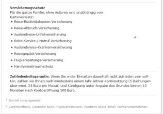 Zufriedenheitsgarantie: Wenn Sie wider Erwarten dauerhaft nicht zufrieden sein sollten, zahlen wir Ihnen nach mindestens einem Jahr aktiver Kontonutzung (5 Buchungen über mind. 25 Euro pro Monat) und Kündigung unter Angabe des Grundes binnen 15 Monaten nach Kontoeröffnung 100 Euro.