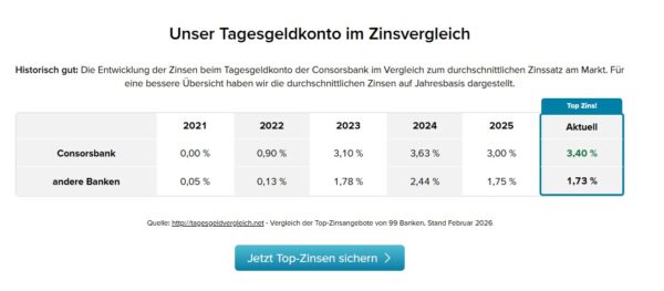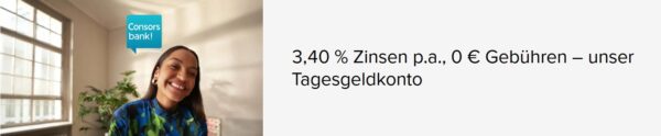 Consorsbank Tagesgeld mit 3,40% Zinsen p.a. (für 3 Monate, bis 1.000.000€)